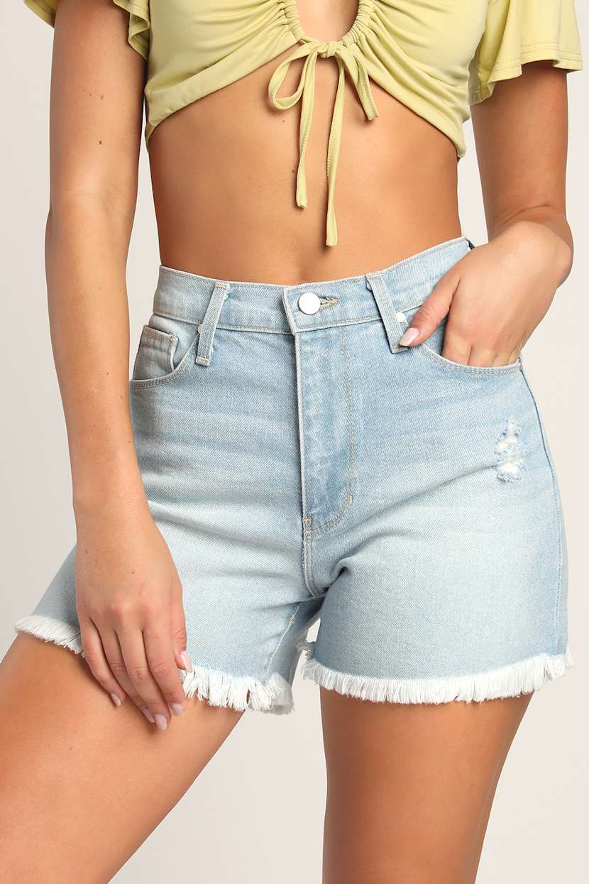 Just Black Light Wash Shorts Raw Hem Shorts Denim Shorts Lulus